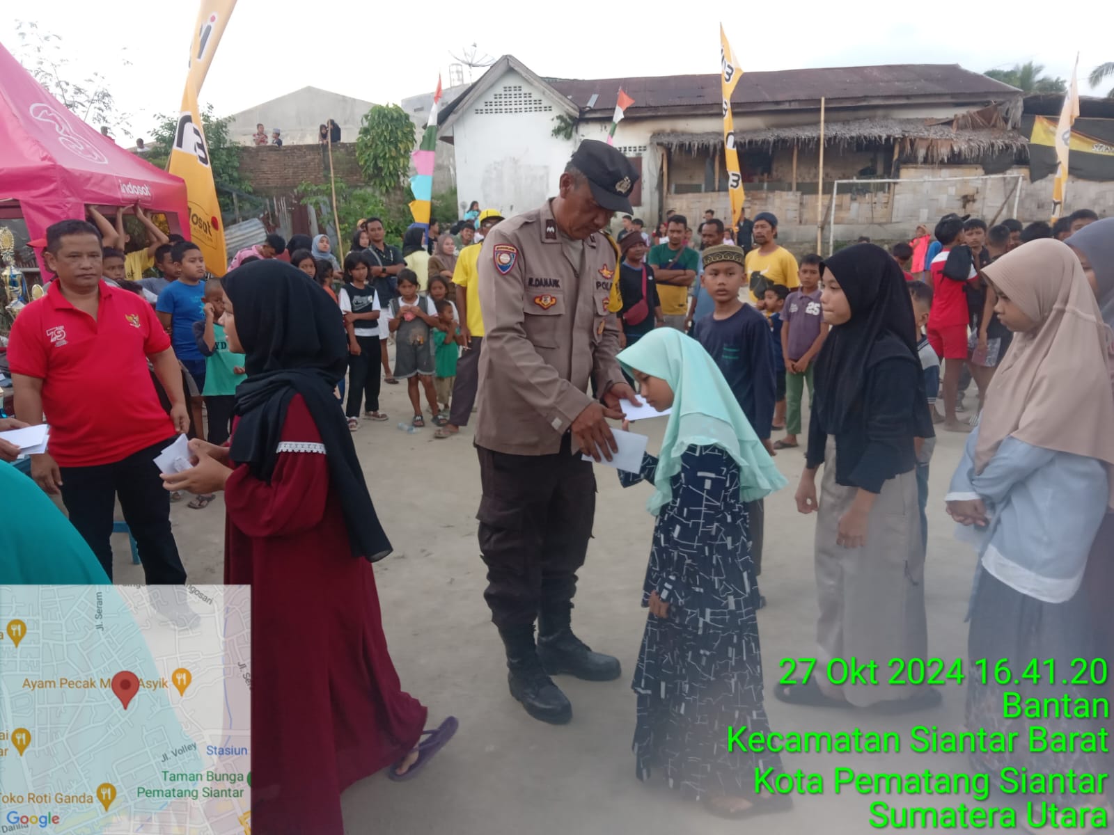 Pematangsiantar || NewsLentera, Kapolsek Siantar Barat mewakili Bhabinkamtibmas Kelurahan Teladan AIPDA Rayendra P. Damanik menghadiri penutupan Turnamen Sepak Bola Kiam Anjas Cup yang berlangsung di Jln Seram Bawah Kelurahan Bantan Kecamatan Siantar Barat Kota Pematangsiantar pada hari Minggu, 27 Oktober 2024 pukul 17.00 Wib.