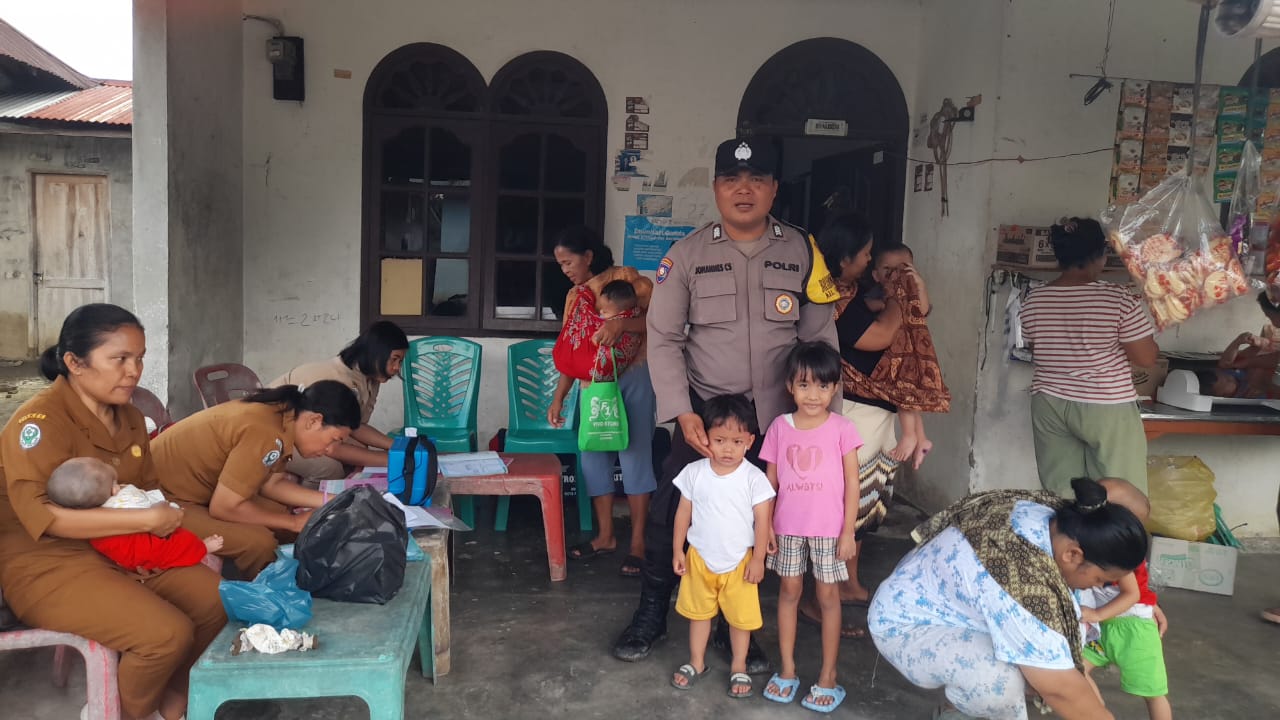 Pematangsiantar || NewsLentera, Polsek Siantar Marihat Polres Pematangsiantar melalui Bhabinkamtibmas Kelurahan Simarimbun Bripka Johannes Siregar melaksanakan sambang kepada warga yang membawa anak imunisasi di Posyandu Klaudio Simarimbun Dolok Kelurahan Simarimbun Kecamatan Siantar Marimbun Kota Pematangsiantar pada hari Selasa 7 Januari 2024 siang pukul 11.00 Wib.