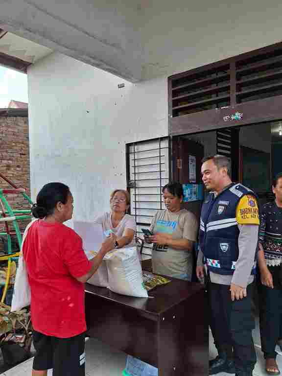 Pematangsiantar || Trendingtopik, Polseķ Siantar Selatan Polres Pematangsiantar melalui Bhabinkamtibmas Kelurahan Aek Nauli AIPTU Herry Susanto Tarigan SH melaksanakan monitoring Pembagian Bantuan Pangan Kepada Warga Kelurahan Aek Nauli, pada Senin 20 April 2026 siang sekira pukul 11.30 Wib.