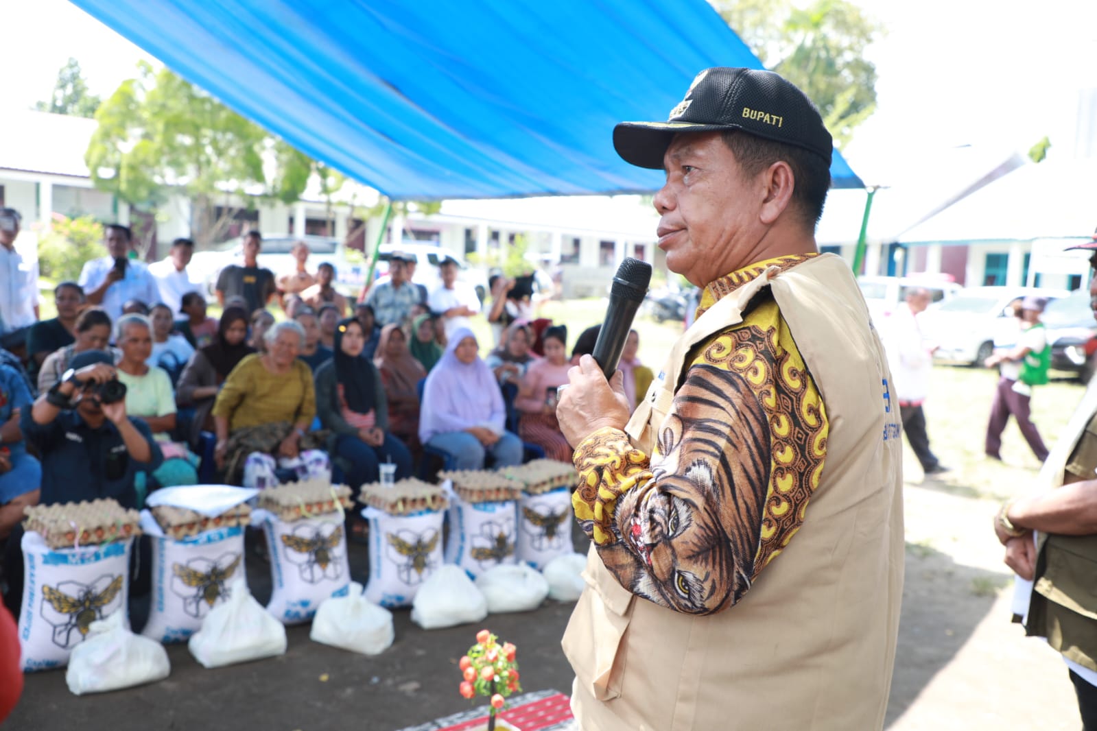 Dalam kesempatan itu Bupati Simalungun di dampingi Kepada BPBD Simalungun Kadis Kesehatan dan Kadis Sosial memberikan secara simbolis bantuan Pangan dan Seng atau atap rumah yang rusak kepada korban bencana.