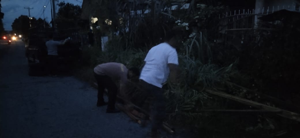 Pematang Siantar || NewsLentera, Polres Pematangsiantar melalui personil piket Polsek Siantar Martoba gerak cepat membantu mengumpulkan dan merapikan atap seng dua rumah warga di Jl. Pdt JW Saragih Kelurahan Tanjung Pinggir Kecamatan Siantar Martoba Kota Siantar yang mengalami rubuh atau berterbangan akibat angin kencang, Minggu (14/7/2024) sore sekira pukul 16.00 Wib.