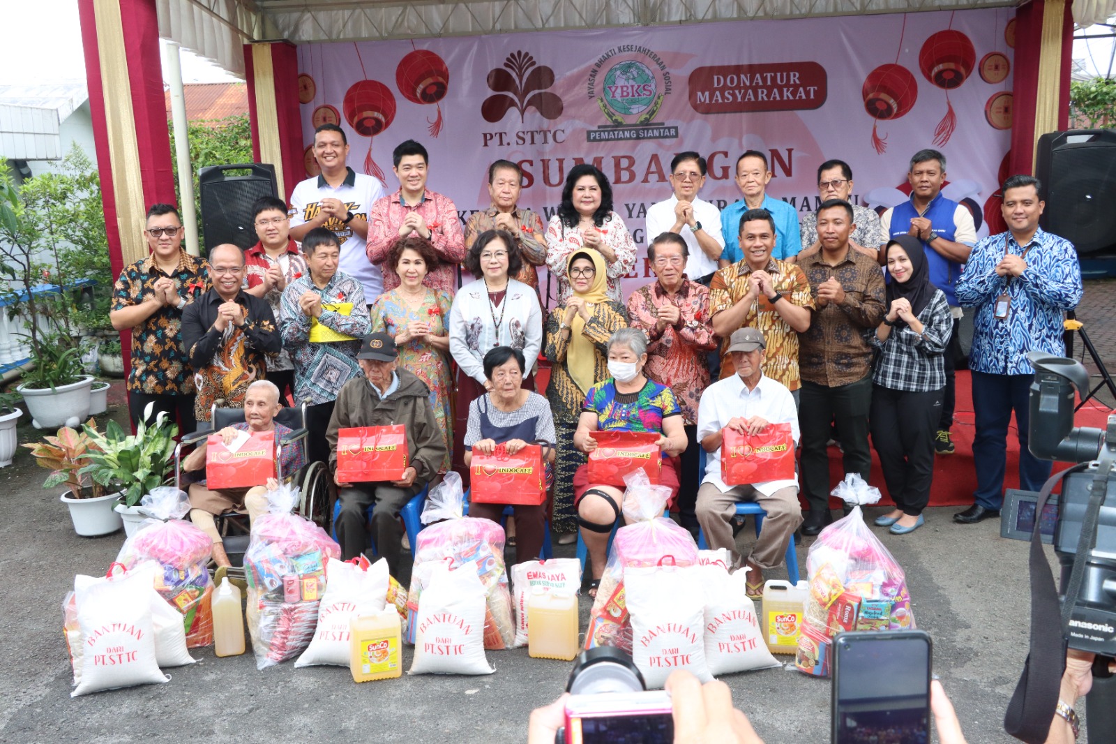 Tampak hadir juga Walikota Pematangsiantar dr. Susanti Dewayani Sp.A, Presiden Direktur PT STTC Group Edwin Bingei Purba Siboro, Direktur Muda PT STTC Group Bruno Bingei Purba Siboro, Kepala Cabang Bank Mandiri Sudirman Pematangsiantar Broven Gultom, Dandim 0207/Simalungun Letkol Inf. Slamet Faojan,M.Han, Ketua Pengurus Harian YBKS Pematangsiantar Lie Hendra serta Para Tamu Undangan dan Penerima Bantuan Paket Imlek.