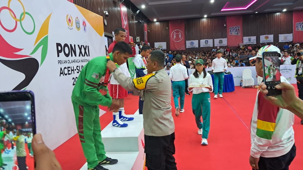 “Kita Patut bersyukur hari ini Final pertandingan PON XXI cabor tinju,dimana selama 20 hari kita telah melakukakn pengamanan dari semua rangkaian berjalan lancar dan sukses di wilayah Polres pematangsiantar.