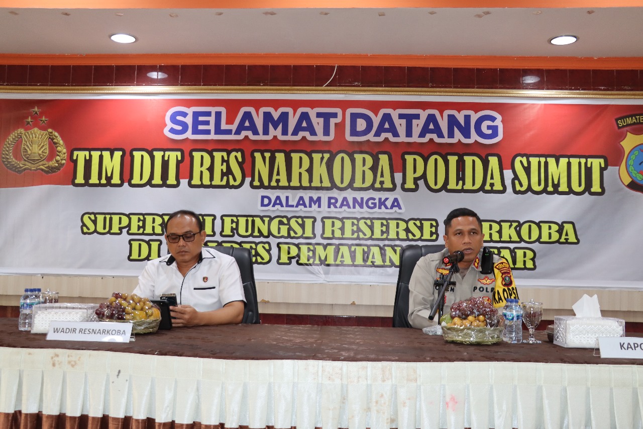 Dalam arahannya Kapolres Pematangsiantar AKBP Yogen Heroes Baruno, S.H., S.I.K menyampaikan selamat datang kepada Tim Dit Res Narkoba Polda Sumut dalam rangka Supervisi Fungsi Reserse Narkoba Tahun 2024 di Polres Pematangsiantar.