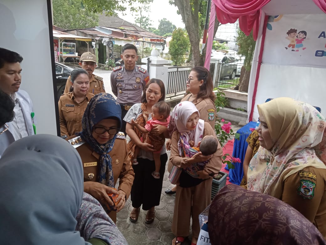 Dalam kegiatan tersebut dilakukan Pemeriksaan Kesehatan Balita Stunting dan Ibu hamil (BUMIL) KEK serta Pemberian Suplementasi untuk balita Stunting secara simbolis Oleh Walikota Pematangsiantar dr. Susanti Dewayani, Sp.A.