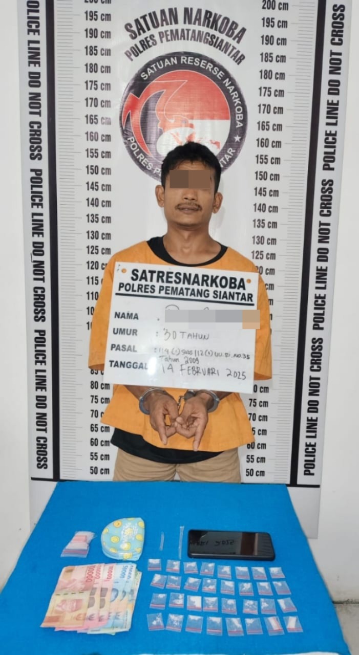 Pematangsiantar || NewsLentera, Per Sempit Ruang Gerak Peredaran Narkoba di wilayah hukum Polres Pematangsiantar, Kembali Satuan Reserse Narkoba berhasil menangkap RC (30) diduga pengedar narkotika jenis sabu di Jalan Nagur Gang Manunggal, Kelurahan Martoba, Kecamatan Siantar Utara, Kota Pematangsiantar pada hari Jumat 14 Februari 2025 siang sekira pukul 13.30 Wib.