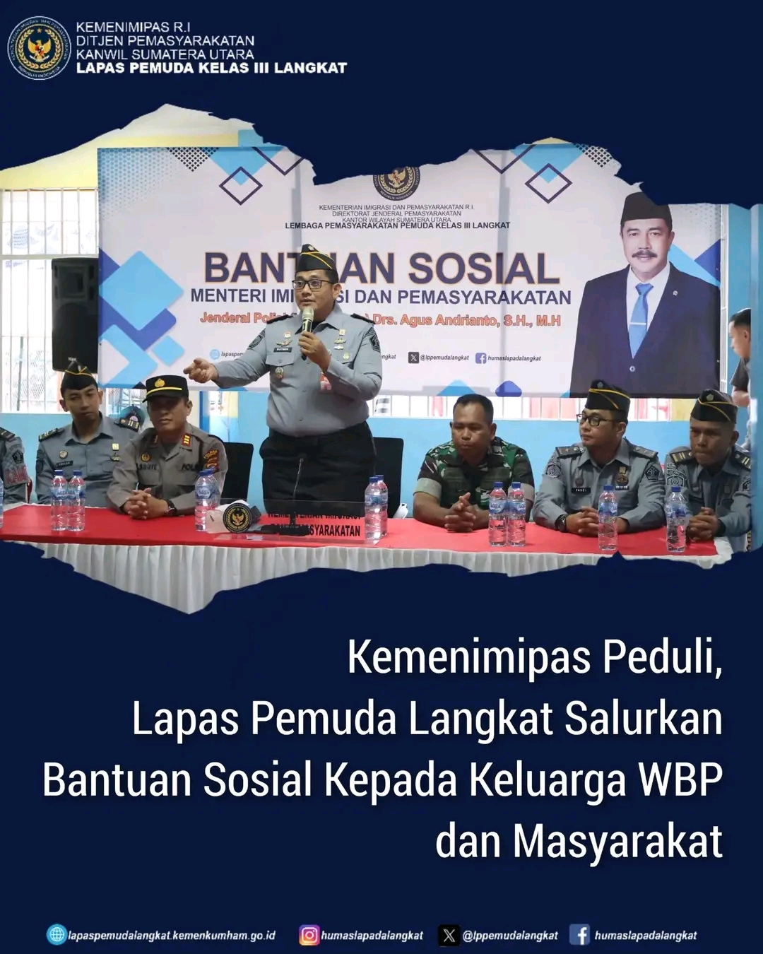 Kepala Lapas Pemuda Langkat, Raymon Andika Girsang mengatakan penyaluran bantuan sosial untuk Masyarakat dan keluarga Warga Binaan sebagai Implementasi Poin Menteri dalam 13 (tiga belas) program akselerasi Menteri Imigrasi dan Pemasyarakatan pada point ke 4 yaitu Bantuan Sosial Kepada Keluarga Warga Binaan dan Masyarakat di sekitar lingkungan UPT Pemasyarakatan.