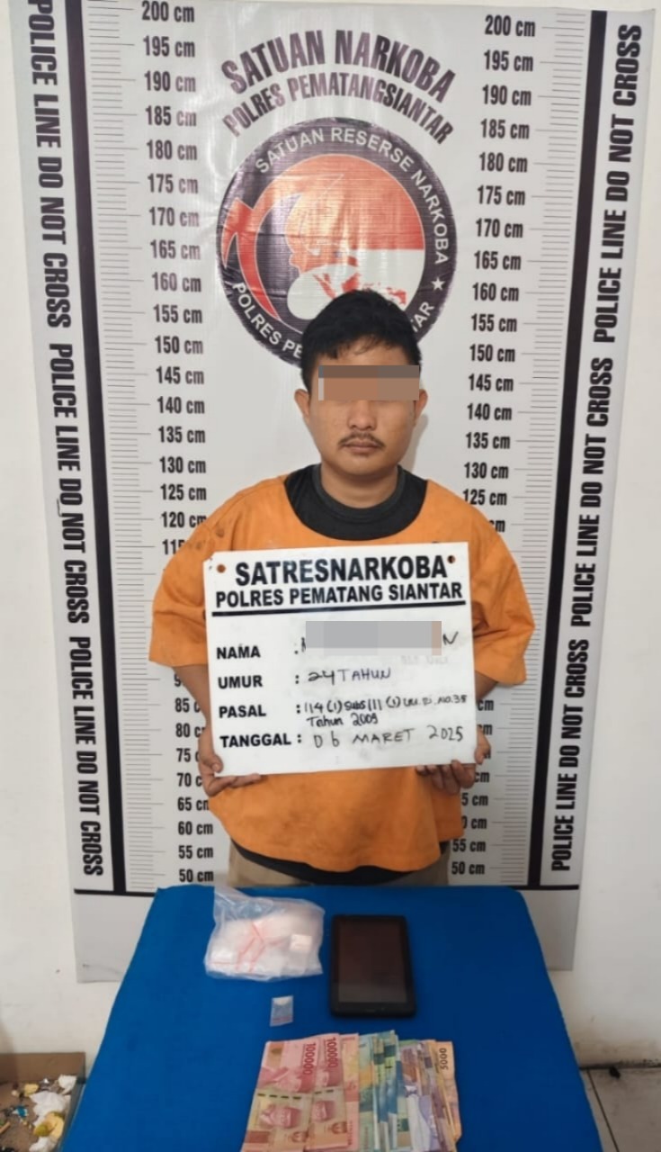 Kapolres Pematangsiantar AKBP Yogen Heroes Baruno SH. SIK melalui Kasat Narkoba AKP JH. Pardede SH dikonfirmasi pada Jumat (7/3/2025) pagi mengatakan Pelaku tersebut berinisial MBN (24) warga Jl. Madura bawah Kelurahan Bantan Kecamatan Siantar barat Kota Pematangsiantar.