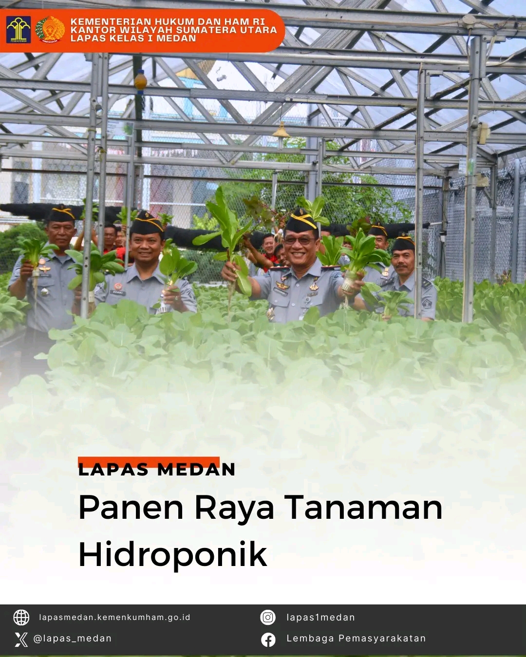 Medan || NewsLentera, Lembaga Pemasyarakatan (Lapas) Kelas I Medan panen raya tanaman hidroponik, Senin (09/09). Budidaya hidroponik ini merupakan salah satu sarana bagi para Warga Binaan Pemasyarakatan (WBP) untuk mengembangkan kemampuan dalam bercocok tanam dan menjadi salah satu poin dalam Sistem Penilaian Pembinaan Narapidana.