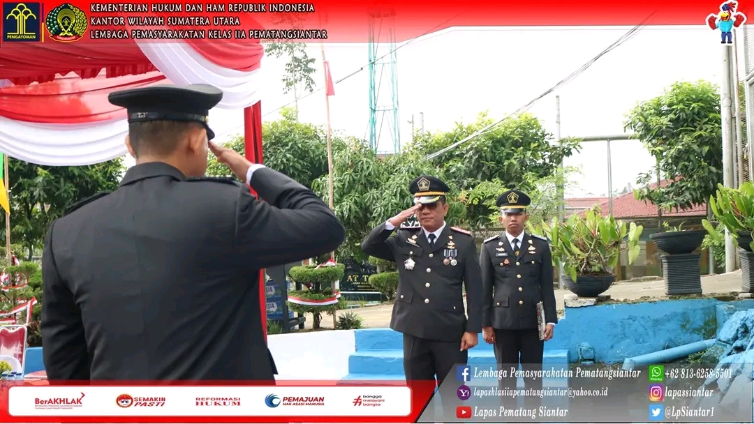 Pematang Siantar || NewsLentera, Pagi ini, Senin, 19 Agustus 2024 Lapas Kelas IIA Pematangsiantar Laksanakan Upacara Peringatan Hari Pengayoman Ke-79 tahun 2024 yang berlangsung di Lapangan Upacara Lapas Narkotika Pematangsiantar pada pukul 08.00 WIB. s.d selasai dengan mengusung tema “Kementerian Hukum dan Ham Mengabdi Untuk Negeri Menuju Indonesia Emas 2045”. Kegiatan Upacara ini turut diikuti oleh Lapas Narkotika Pematangsiantar dan Kantor Imigrasi Pematangsiantar.