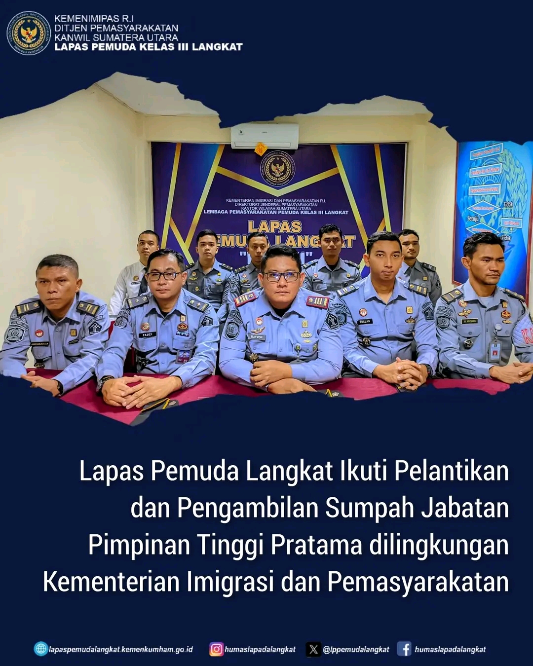 Langkat || NewsLentera, Lembaga Pemasyarakatan Pemuda Kelas III Langkat ikut berpartisipasi dalam kegiatan pelantikan dan pengambilan sumpah jabatan pimpinan tinggi pratama di lingkungan Kementerian Hukum dan Hak Asasi Manusia (Kemenkumham) secara virtual. Selasa(14/01/2024).
