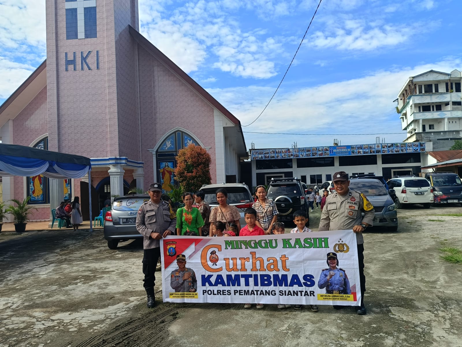 Kapolres Pematangsiantar AKBP Yogen Heroes Baruno SH, SIK melalui para bhabinkamtibmas mengatakan Minggu Kasih Curhat Kamtibmas ini rutin dilaksanakan oleh anggota polres pematangsiantar yang hadir langsung di tengah para jemaat pada saat melangsungkan ibadah agar dapat mendengar masukan ataupun keluhan berkaitan situasi Kamtibmas di lingkungan atau tempat tinggal masing-masing.