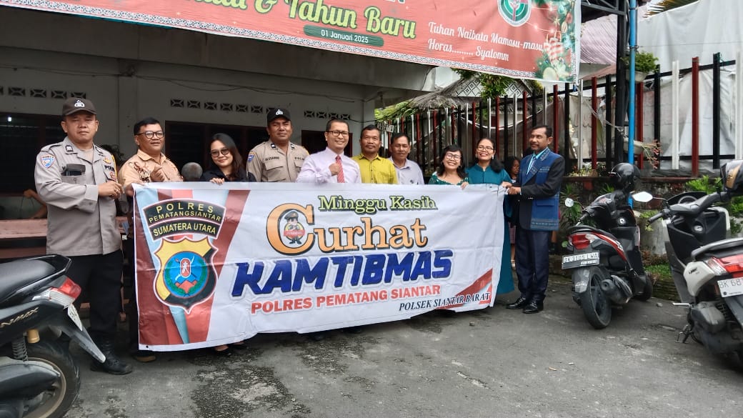 Pematangsiantar || NewsLentera, Dalam mewujudkan wilayah Hukum Polres Pematangsiantar yang kondusif,jajaran polres pematang siantar laksanakan Minggu Kasih Curhat Kamtibmas Sambangi warganya untuk tampung curhat di gereja gereja wilayah Kota Pematang siantar, Minggu,12 januari 2025.