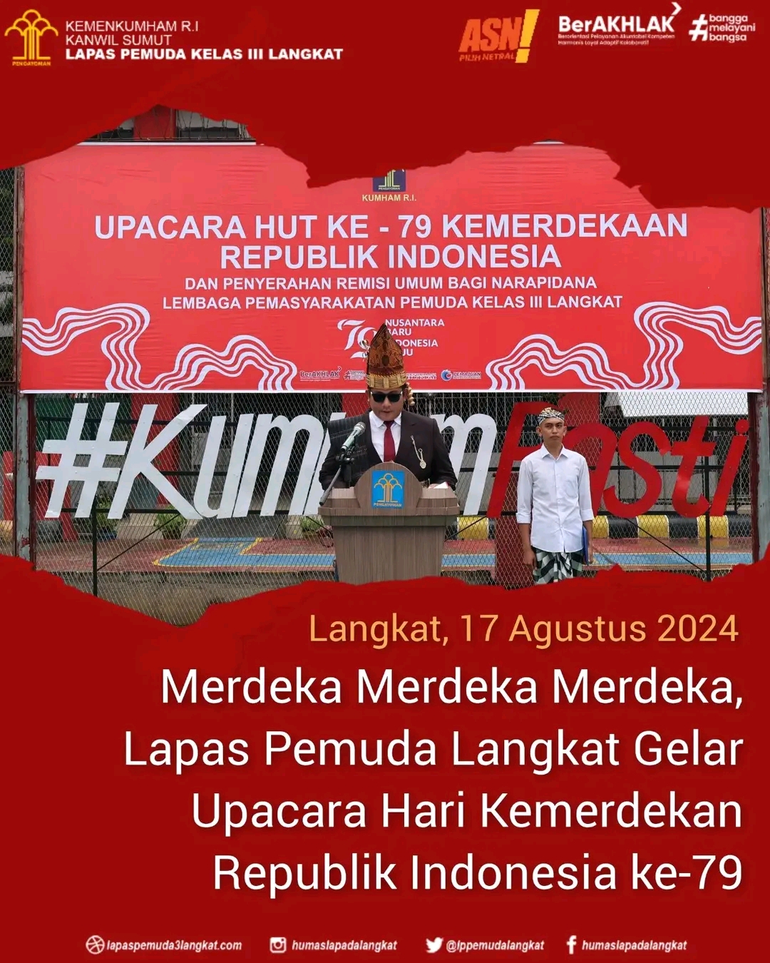 Langkat || NewsLentera, Dalam rangka Peringatan Hari Kemerdekaan Republik Indonesia, Lapas Pemuda Kelas III Langkat Kanwil Kemenkumham Sumatera Utara laksanakan Upacara Peringatan Hari Ulang Tahun Kemerdekaan Republik Indonesia ke-79 tahun 2024. Sabtu (17/08/2024).