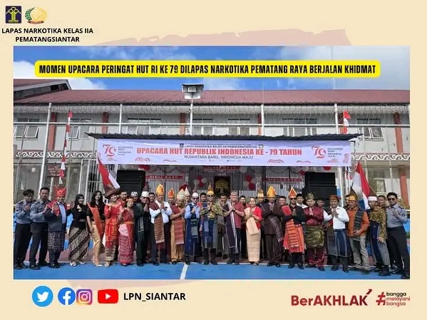 Pada upacara kemerdekaan tahun ini, upacara berlangsung dengan khidmat tanpa halangan yg berarti dan tampak antusias para petugas di dalam menghayati arti kemerdekaan sangatlah tercermin dari semangat para pegawai yang tetap siap dalam mengikuti upacara bendera. Tampak Kalapas Narkotika Kelas IIA Pematangsiantar bertindak sebagai inspektur upacara, mengenakan pakaian tradisional daerah Khas Simalungun.