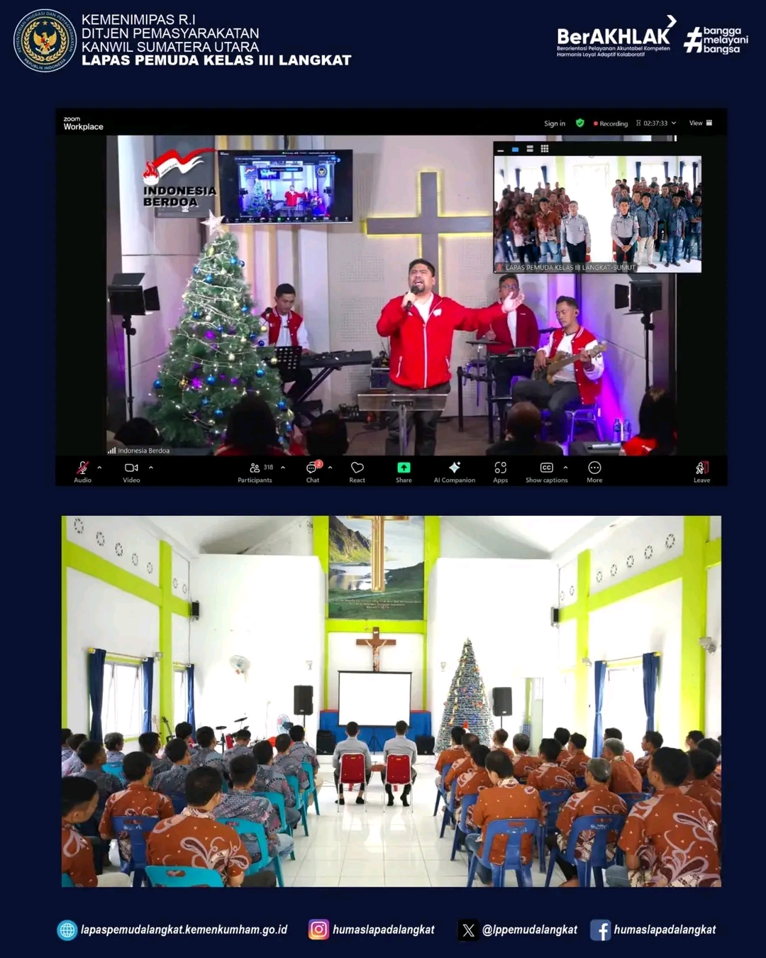 Penuh Kasih, WBP Lapas Pemuda Langkat Ikuti Ibadah Natal Nasional Bersama Seluruh Lapas Seluruh Indonesia