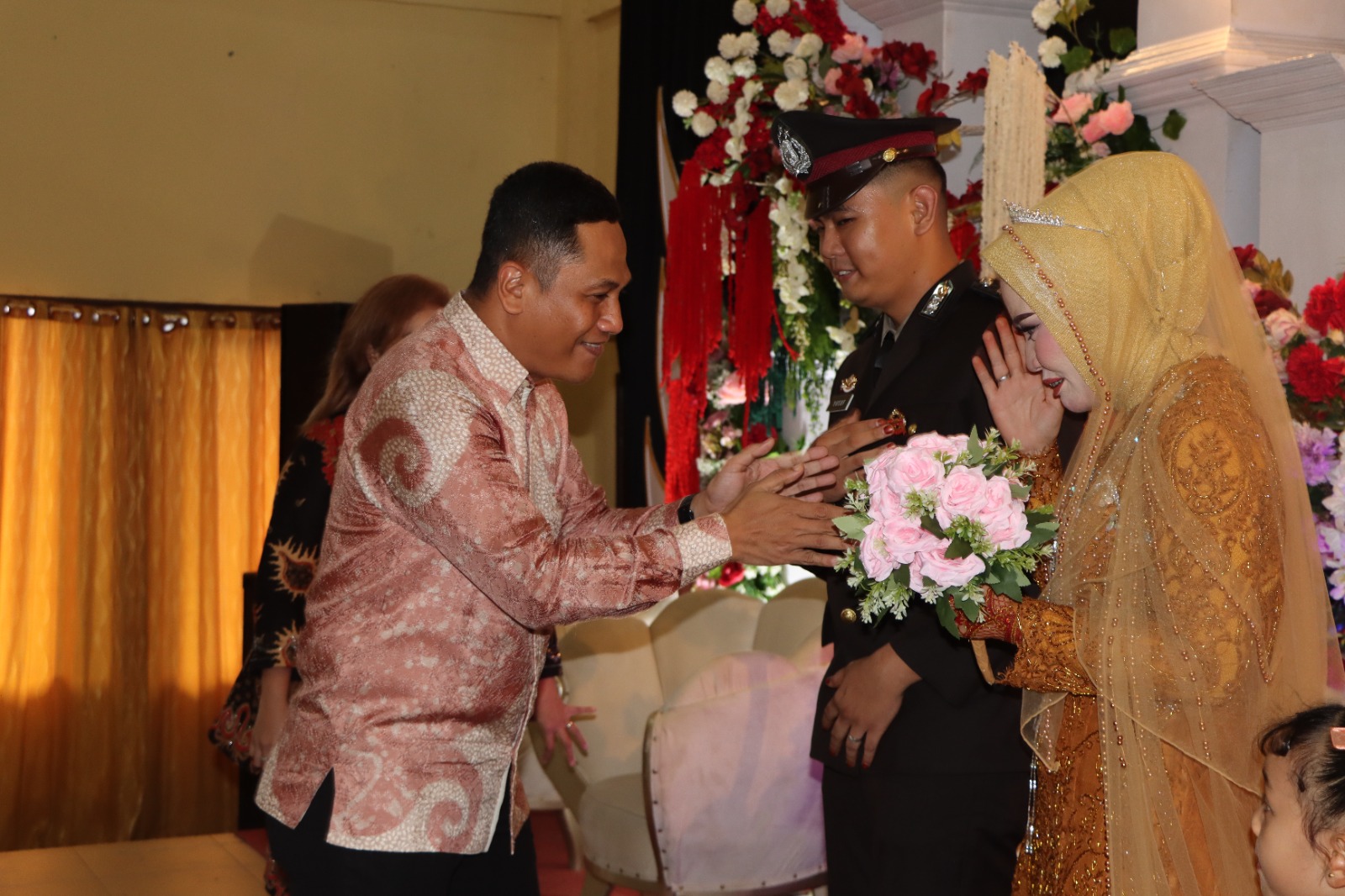 Orang tua mempelai , mengucapkan terima kasih kepada Kapolres dan Rombongan yang telah hadir dan memberikan doa restu kepada kedua mempelai.