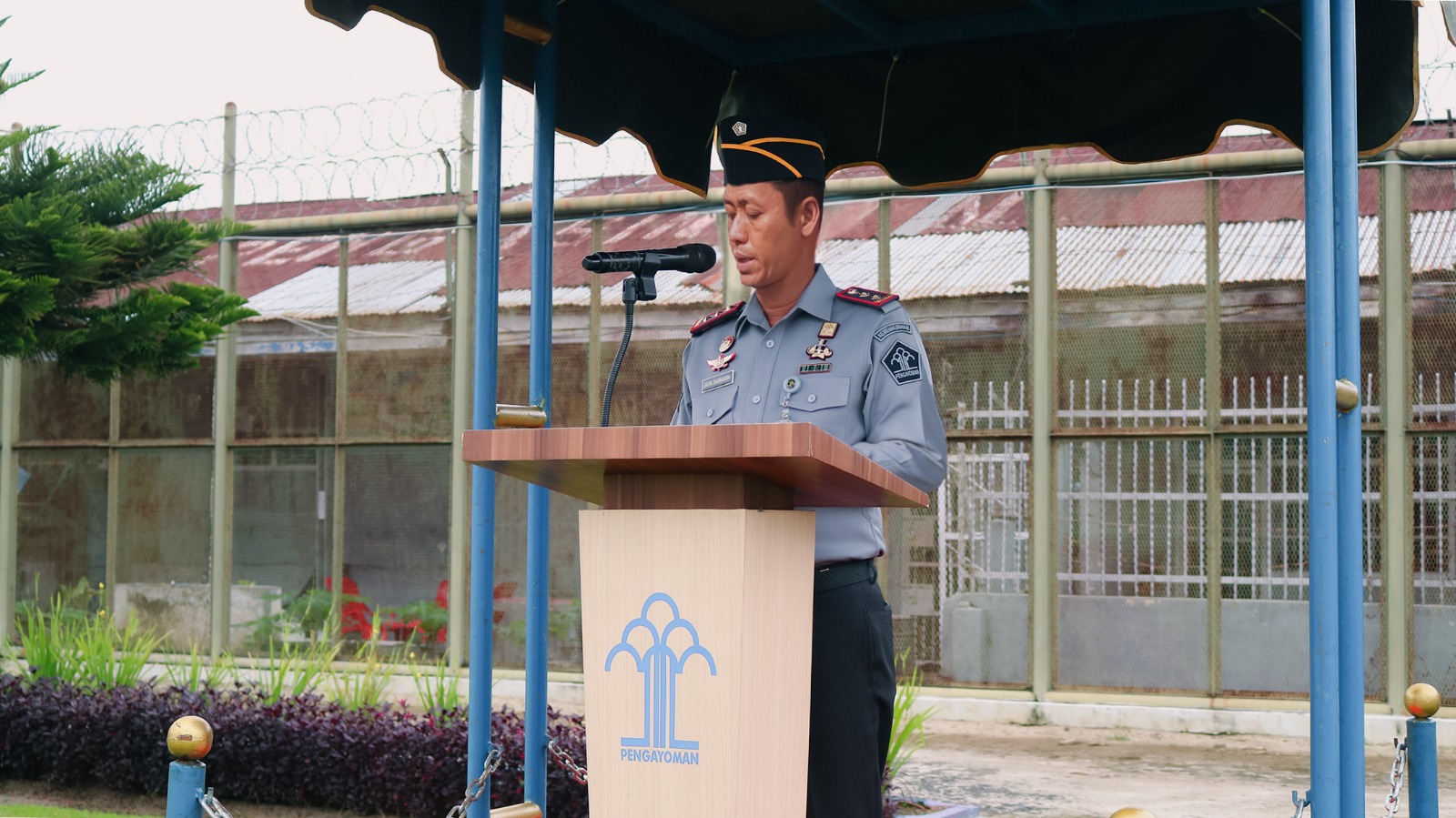 Bertindak sebagai Inspektur Upacara, Kepala Lapas Pematang Siantar Kanwil Kemenkumham Sumut, Sukarno Ali pimpin upacara memperingati Hari Kesaktian Pancasila 1 Oktober 2024 yang berlangsung di Lapangan Upacara Lapas Pematang, Selasa (1/10).