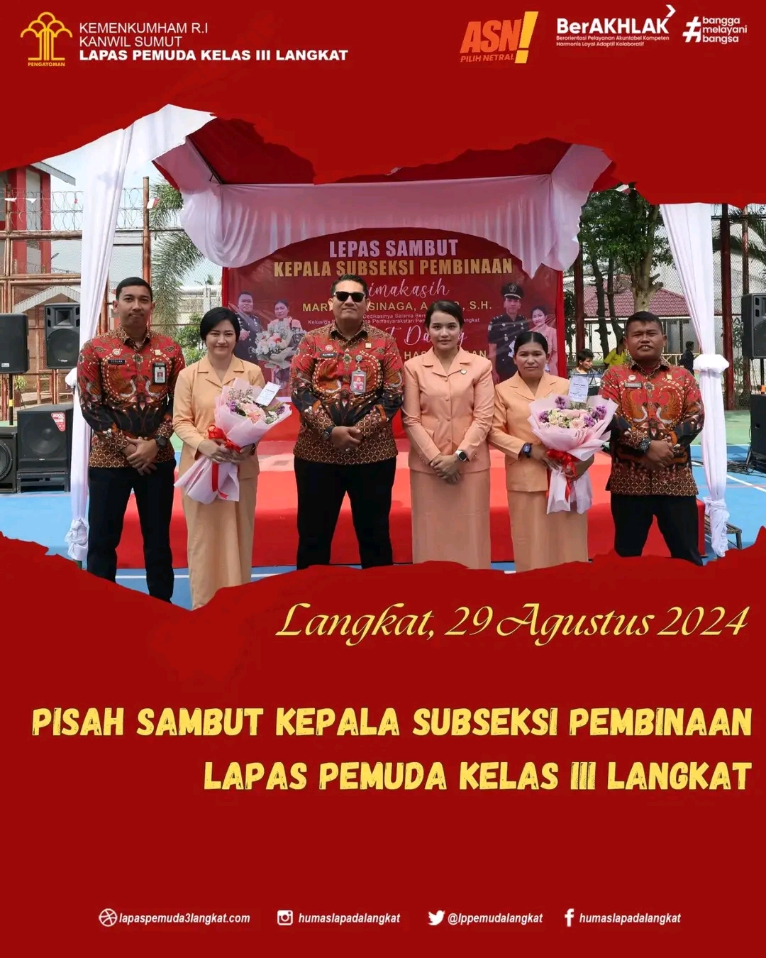 Langkat || NewsLentera, Acara Pisah Sambut Kepala Subseksi Pembinaan di Gelar di Lapangan Lapas Pemuda Kelas III Langkat Berjalan dengan Haru (29/08).