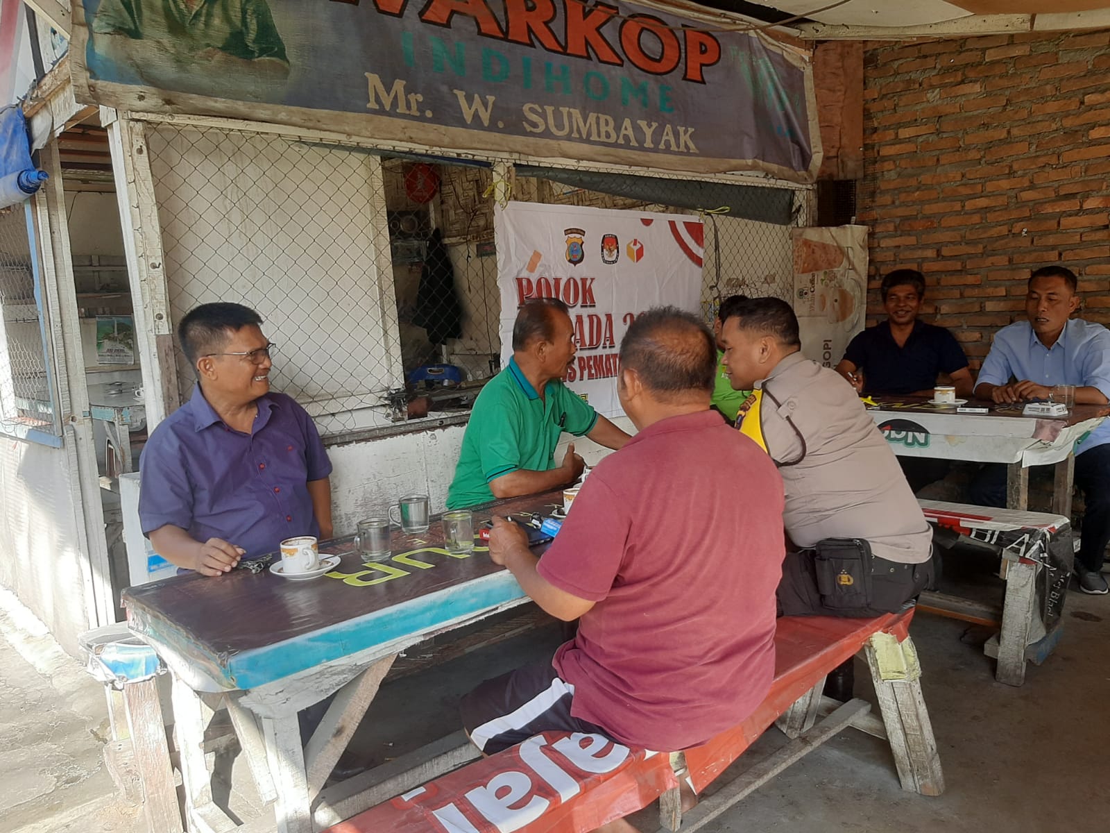 Pematangsiantar || NewsLentera, Polsek Siantar Utara, Polres Pematangsiantar melalui Bhabinkamtibmas AIPTU.B. Purba dan AIPDA Hotlan Damanik melaksanakan Pojok Pemilihan kepala daerah (Pilkada) tahun 2024 kepada warga jalan Bali Kelurahan Bane Kecamatan Siantar Utara Kota Pematangsiantar tepatnya di di Warkop Saragih sumbayak, Senin 11 November 2024 pagi pukul 08.30 Wib.