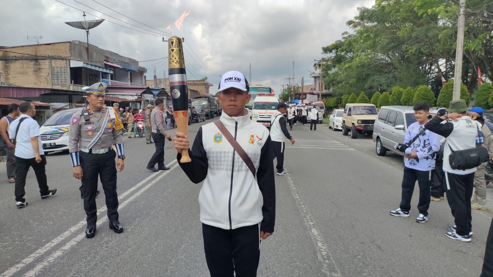 Kasat Lantas Polres Simalungun IPTU Jonni F. H. Sinaga, S.H., menjelaskan bawah, “Kirab Api PON XXI Tahun 2024 tiba di depan SMP Negeri 1 Pematang Raya, Jalan Sutomo, Kelurahan Sondi Raya, Kecamatan Pematang Raya, Kabupaten Simalungun, pada pukul 10.00 WIB. Rombongan ini disambut oleh Asisten 1 Pemerintahan Pemkab Simalungun, Albert Saragih, S.STP. Sambutan meriah oleh pemerintah daerah dan masyarakat sekitar mencerminkan antusiasme yang tinggi terhadap perhelatan olahraga terbesar di Indonesia ini, ucap IPTU Jonni.
