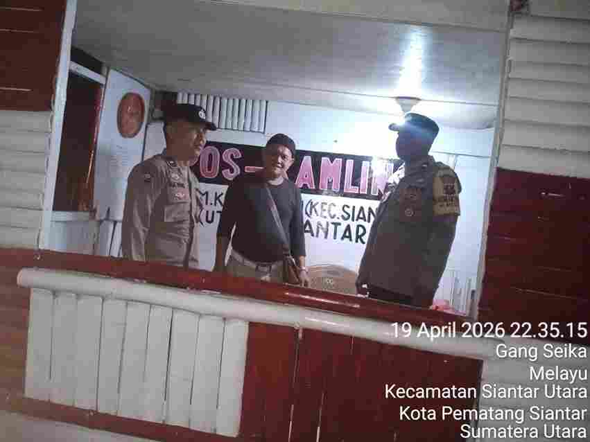 Pematangsiantar || Trendingtopik, Polsek Siantar Utara Polres Pematangsiantar melalui Piket Bhabinkamtibmas AIPTU H.E. Pane dan AIPDA M. Nurday melaksanakan SALING (Sapa Siskamling) di Pos Kamling Melayu Jalan Tanah Jawa Kelurahan Melayu Kecamatan Siantar Utara Kota Pematangsiantar, pada Minggu 19 April 2026 malam sekira pukul : 22.30 Wib.