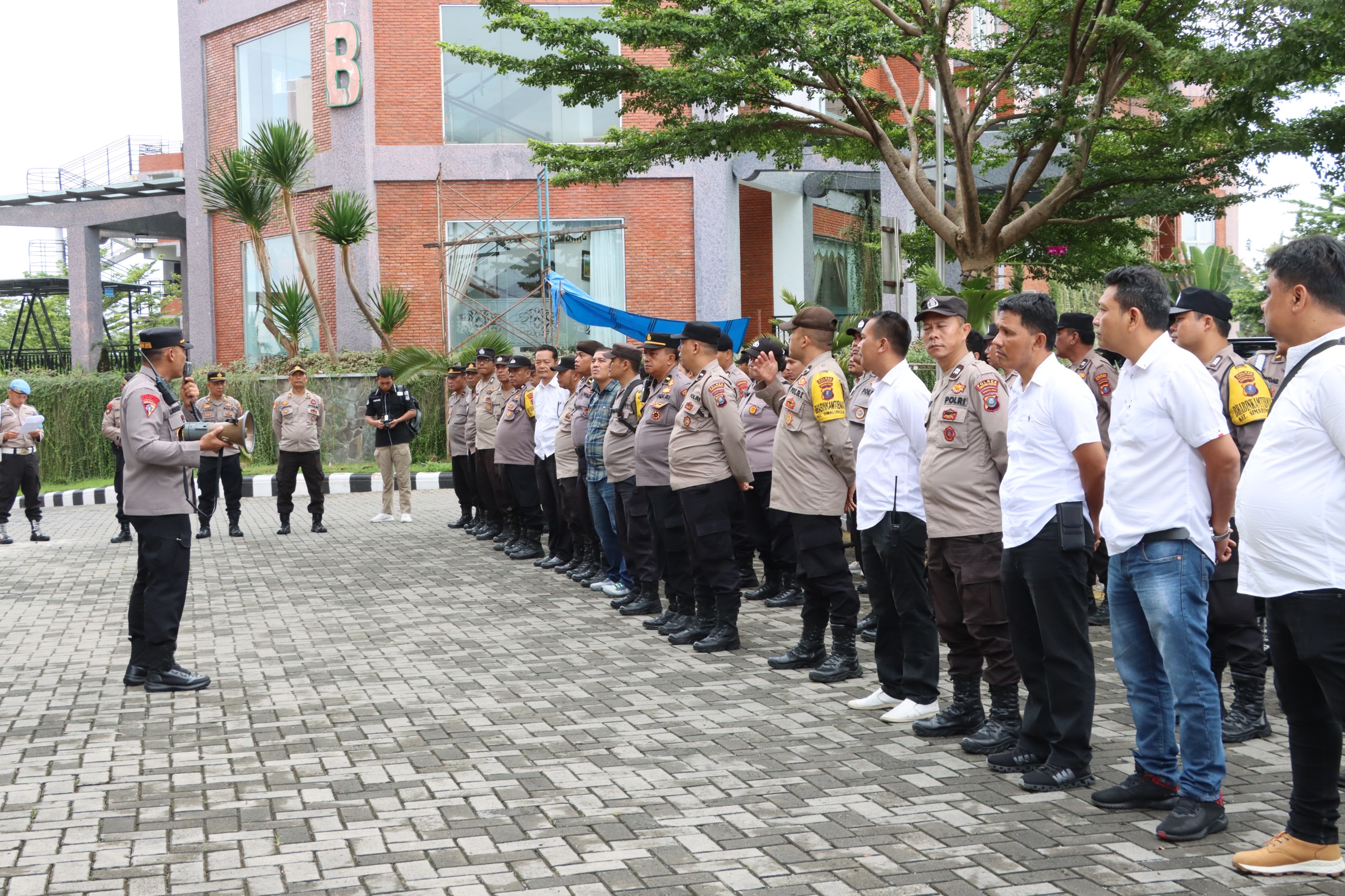 Pematangsiantar || NewsLentera, Kapolres Pematang Siantar AKBP Yogen Heroes Baruno S.H,S.I.K Pimpin langsung Pelaksanaan Pengamanan Rapat Pleno Terbuka Tingkat Kotamadya bertempat Ballroom Simalungun Hotel Sapadia Pematangsiantar, Selasa 03 Desember 2024.