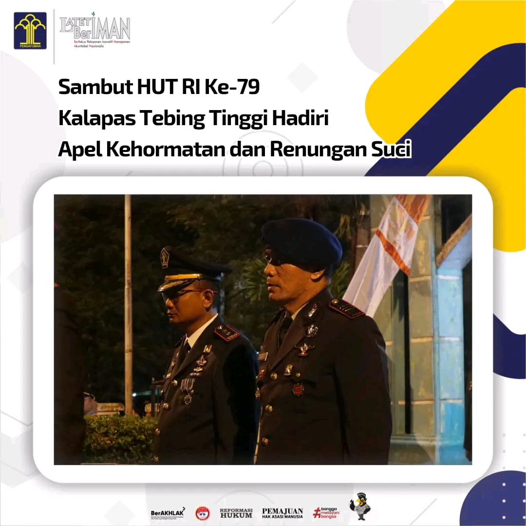 Hadir dalam undangan, Kepala Lembaga Pemasyarakatan (Kalapas) Anton Setiawan, ikuti langsung apel kehormatan dan renungan suci yang bertempat di Taman Makam Pahlawan Kota Tebing Tinggi. Sabtu, 17 Agustus 2024.