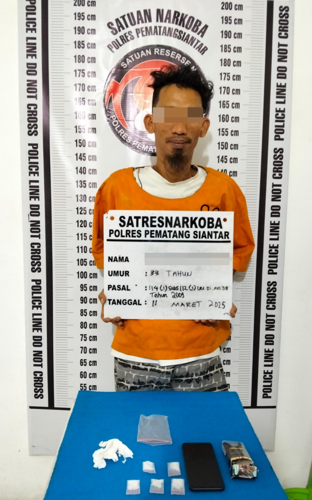 Kapolres Pematangsiantar AKBP Yogen Heroes Baruno SH. SIK melalui Kasat Resnarkoba AKP JH. Pardede SH.MH dikonfirmasi pada Rabu (12/3/2025) sore mengatakan penangkapan tersebut di lakukan di Halte bus dekat RS. Vita Insani, Jalan Merdeka Kelurahan Pahlawan Kecamatan Siantar timur Kota Pematangsiantar.