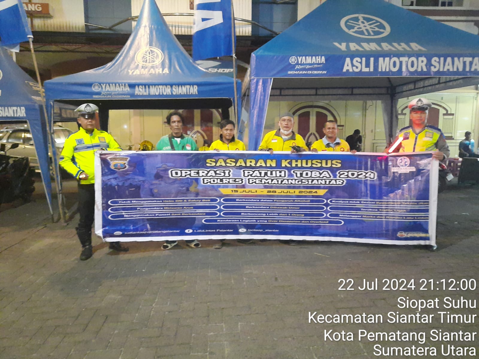 Pematang Siantar || NewsLentera, Personel Satlantas Polres Pematangsiantar melaksanakan kegiatan sosialisasi terkait pelaksanaan Operasi (Ops) Patuh Toba 2023 di seputaran Jalan Sangnaualuh dan Jalan Merdeka, Senin 24 Juli 2024 pukul 20.00 WIB.