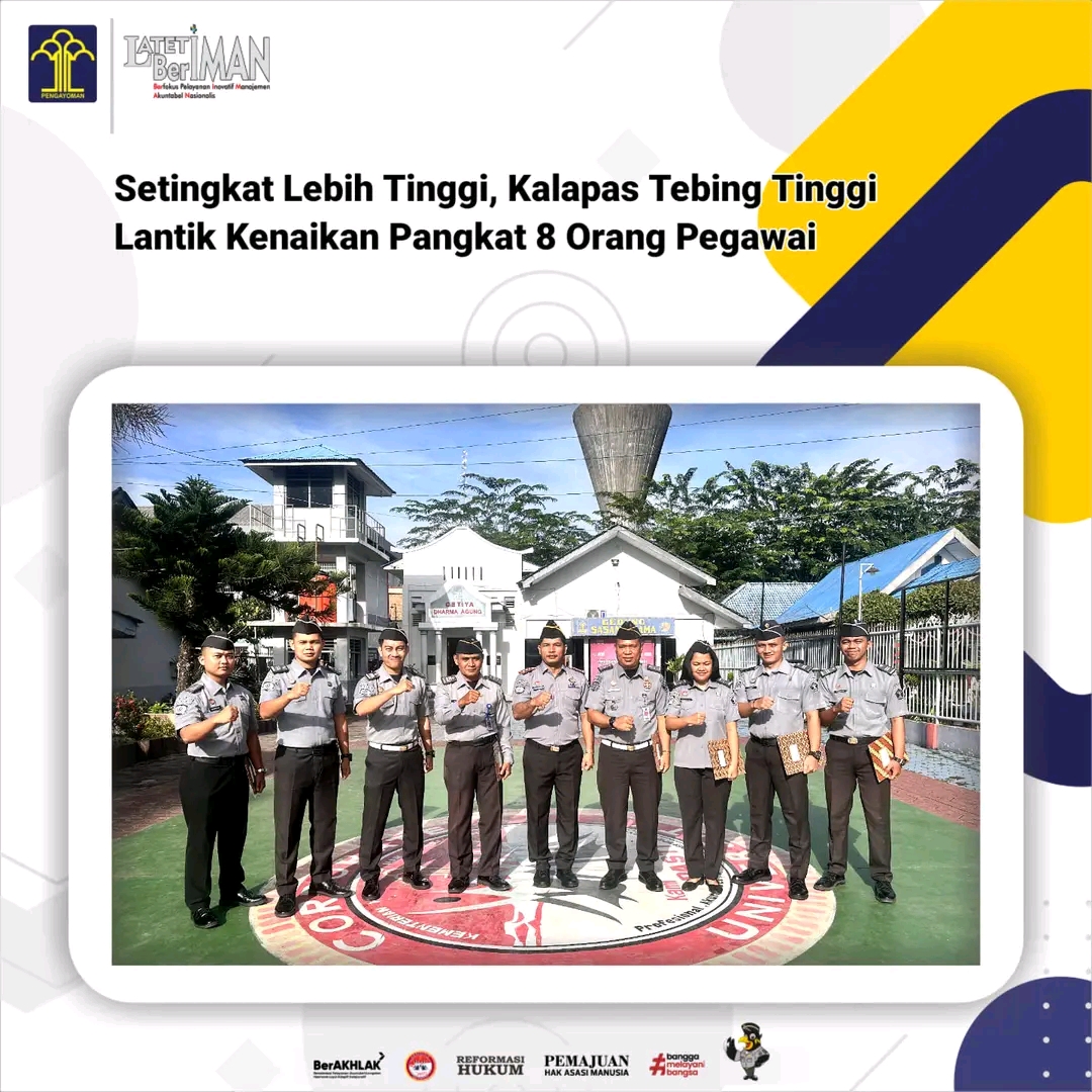Tebing Tinggi || NewsLentera, Kepala Lembaga Pemasyarakatan (Kalapas) Kelas IIB Tebing Tinggi Leonard Silalahi melantik kenaikan pangkat pengabdian delapan (8) orang pegawai Lapas Tebing Tinggi. Selasa, 03/12/2024.