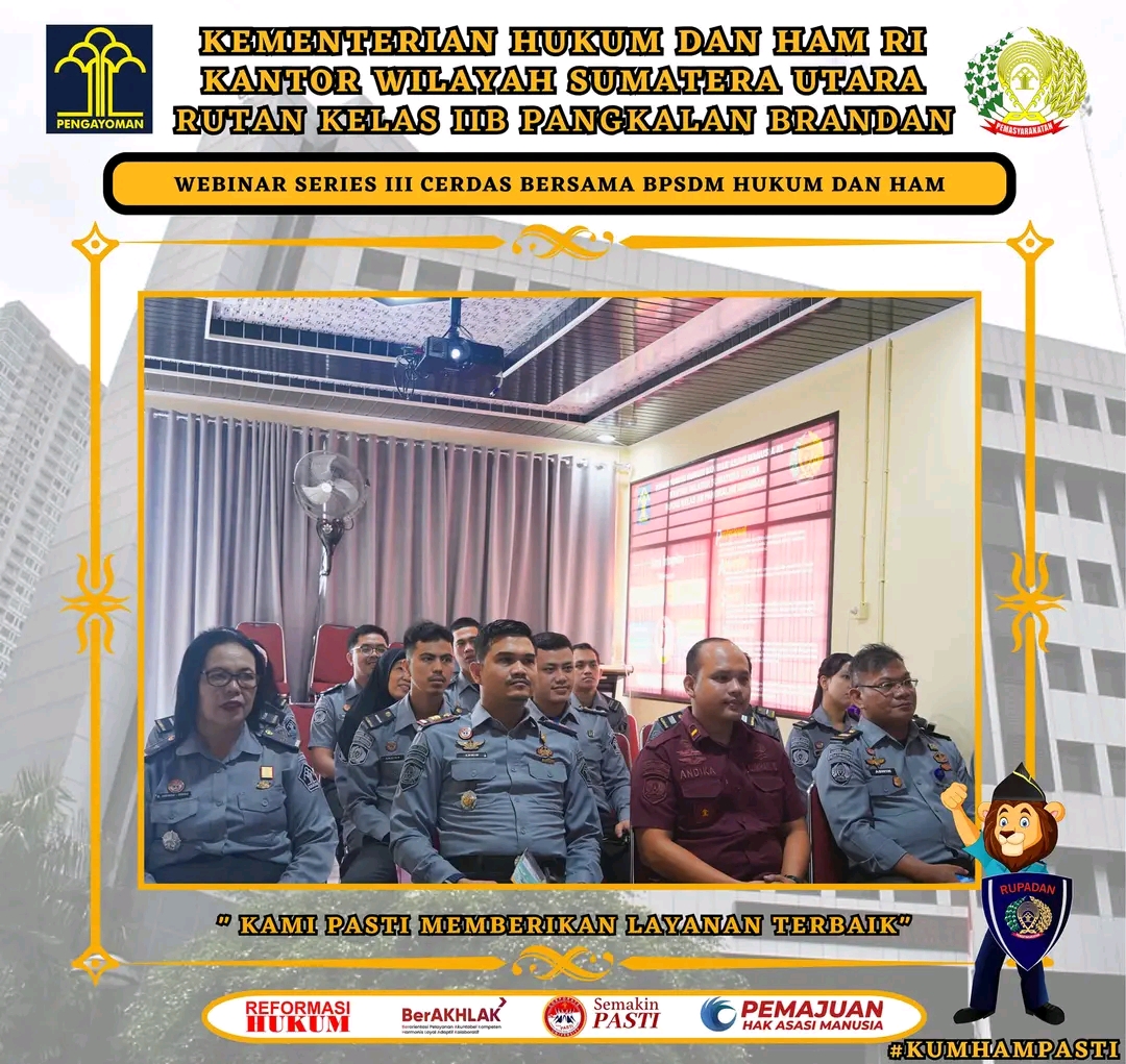 Pangkalan Brandan || NewsLentera, Rumah Tahanan Negara (Rutan) Kelas IIB Pangkalan Brandan mengikuti Webinar Series III secara virtual pada Kamis (12/9/2024). Kegiatan ini bertujuan untuk meningkatkan kompetensi pegawai dengan tema “Kenali Potensimu, Maksimalkan Performamu”.