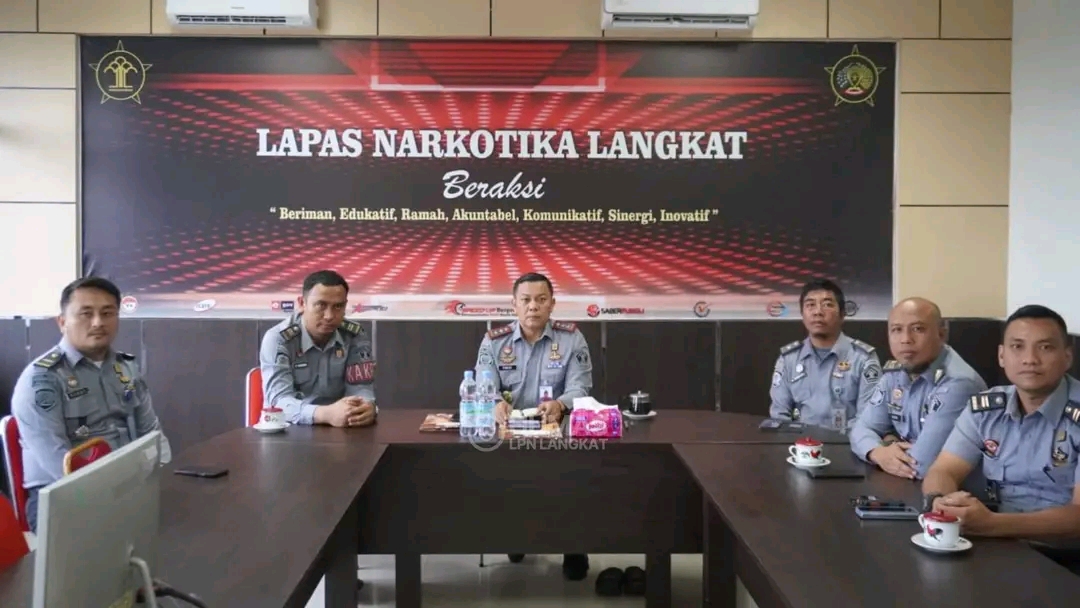 Langkat || NewsLentera, Kepala Lembaga Pemasyarakatan (Lapas) Narkotika Kelas IIA Langkat, Fauzi Harahap beserta jajaran mengikuti secara virtual kegiatan Penguatan Layanan Pemasyarakatan bagi Lapas/Rutan/LPKA yang digelar di Lapas Kelas I Medan. Selasa (03/12).